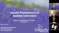 Oct 10, 2025Mary Huff, Ph.D., DragonFly Mental HealthSupported by: AccessComputingImpostor phenomenon, the feeling that you don’t truly belong, is common among academics and can negatively impact both quality of life and the pursuit of knowledge, regardless of actual achievements. This seminar will define impostor phenomenon, explore its symptoms in academic settings, and foster community discussion on strategies to overcome it. As part of Dragonfly’s Global Migration initiative, this session will raise awareness, improve mental health knowledge, and build supportive skills among academics worldwide.